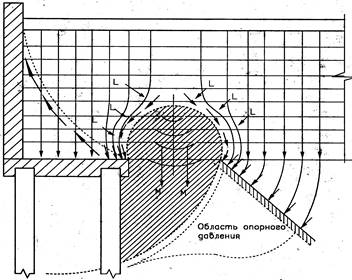 Рис 2.1 Схема перераспределений напряжений в грунте над вымытым грунтом.