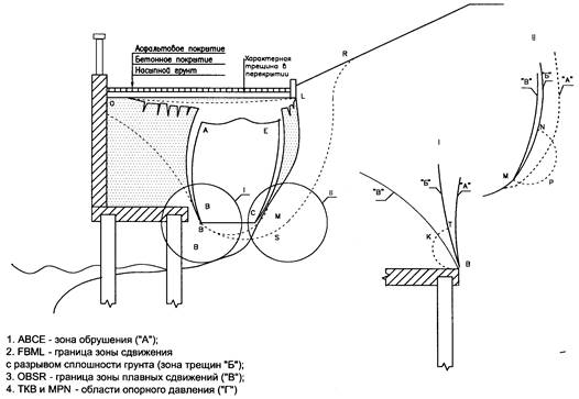 Рис. 2.3 Схема образования зон сдвижения грунтов над "низким" ростверком