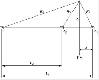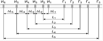 На рис. 2.1 показана схема размещения катушек на зондовом устройстве. Здесь принятые следующие обозначения: Г1 , Г2 , Г3 , Г4 , Г5 – генераторные катушки; И1 , И2 , И3 , И4 , И5 , И6 – измерительные катушки.