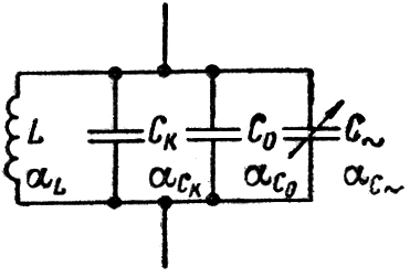 – ёмкость конденсатора термокомпенсации. При большом коэффициенте перекрытия диапазона, когда