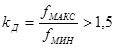 Если k Д < 1,5, то значительно лучшие результаты по термокомпенсации в диапазоне частот можно получить, если принять так называемую “оптимальную термокомпенсацию”, сущность которой заключается в том, что при f МАКС делают перекомпенсацию (ТКЧ положительный), а при f МИН – недокомпенсацию (ТКЧ отрицательный), причём абсолютные значения ТКС при f МАКС и f МИН должны быть равны (рис. 6.5).