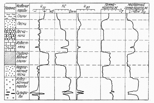 Но, несмотря на это обстоятельство, в пределах одного района однотипные породы имеют близкие значения удельных сопротивлений. Поэтому, определив по электрическому каротажу удельное сопротивление пройденных скважиной пород, можно судить, какие литологические разности были пройдены скважиной, и выделить во вскрытом геологическом разрезе нефтегазонасыщенные и водонасыщенные интервалы.
