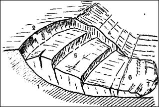 | Изменение напряженного состояния глинистых пород (перепад давления) | Уполаживание склонов или откосов | Срезка земляных масс в верхней части откоса и укладка их у подножия для пригрузки в месте в мете ожидаемого выпирания |