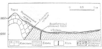 Рисунок 2 – Поперечный разрез центральной части оползня на горе Тертл [12]