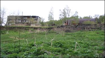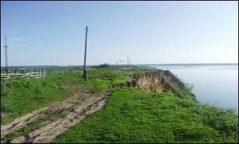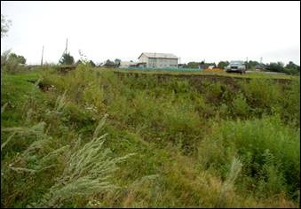 Ближайшая усадьба, расположенная в 22 м от бровки склона, заброшена. По-видимому, ранее оползневые процессы оказывали воздействие на земли занятые под огород. Часть упавших столбов забора находятся за бровкой склона. Ближайшая жилая усадьба расположена на расстоянии порядка 80 – 100 м от берегового уступа [6].