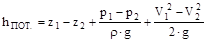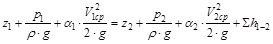 Уравнение Бернулли, записанное для двух сечений потока вязкой жидкости, движущейся в трубопроводе с местными сопротивлениями, в общем случае (обозначения общепринятые) имеет вид: