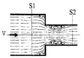 Этот вид местного сопротивления имеет место при резком изменении диаметра трубопровода от меньшего к большему. Картина течения при внезапном расширении представлена на рис. 1.