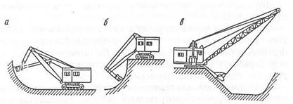 а — прямая лопата; 6—обратная лопата; в—драглайн