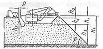 Рабочее место экскаватора называется забоем. Геометрические размеры и форма забоя различны и зависят от типа рабочего оборудования, экскаватора, его рабочих параметров, размеров земляного сооружения, видов транспорта и принятой схемы разработки грунта. По мере разработки грунта в забое экскаватор перемещается, оставляя разработанные участки, называемые проходками. Очень важное значение имеет правильный выбор забоя. Высота забоя также принимается не по максимальной высоте резания, а из условия наполнения ковша за одно черпание. Высоту забоя можно принимать и с превышением высоты, необходимой для наполнения ковша. В этом случае при разработке сыпучих грунтов черпание производят у подошвы забоя, подбирая осыпающийся грунт из верхней части забоя. Если грунт не осыпается, то забой разрабатывается по частям — сначала верхняя часть (на глубину двух-трех стружек), а затем нижняя часть забоя и т. д. Если в процессе экскавации происходит осыпание грунта (при разработке сыпучих и мелкорваных пород), высота забоя прямой лопаты может незначительно превышать максимальную высоту резания. Такое превышение допускается и для плотных грунтов, но при условии принятия мер своевременного обрушения козырьков, образующихся в верхней части забоя. Таким образом, для получения высокой производительности труда размеры забоя следует принимать по оптимальным рабочим параметрам экскаватора с учетом всех условий производства работ на площадке. Оптимальные рабочие параметры обычно устанавливаются для каждого типа экскаватора. Экскаваторы с прямой лопатой разрабатывают грунт выше уровня стоянки экскаватора. Небольшие модели этих экскаваторов могут разрабатывать грунт и ниже уровня стоянки, но на незначительную глубину, что используется лишь для устройства съездов в котлован.