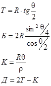 Все эти элементы могут быть найдены по измеренному углу поворота θ и заданному проектному радиусу R.