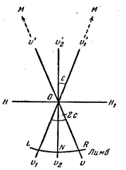 При втором наведении (КЛ) визирная ось займет положение v 1 v 1 ', а правильный отсчет по лимбу составит
