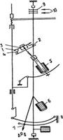 пропорционально азимуту φ. При измерении угла стрелка указателя угла отклонения, жестко скрепленная с отвесом, переместится на дугу δ и закоротит реохорд. Сопротивление незакороченного участка реохорда