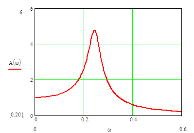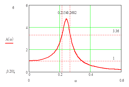 2. Резонансная частота ωр = 0,243, при Amax = 4,7545.