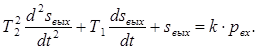Если пневматический клапан применяется в системе с инерционным объектом, в котором переходные процессы протекают медленно, т. е. скорости изменения р вх и s вых небольшие, то величина ускорения d 2 s вых /d t 2 с точностью, достаточной для практических расчетов, может быть принята равной нулю. Тогда дифференциальное уравнение клапана примет вид /4, с. 45/: