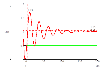 Так как система является устойчивой и график переходной функции не имеет колебаний, то можно определить только максимальное значение регулируемой величины, которое будет равно установившемуся: