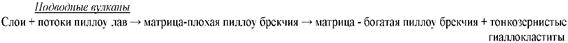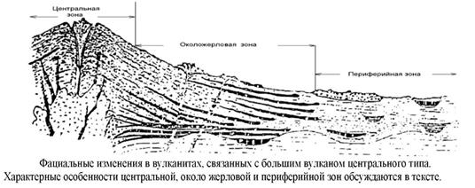 Периферийные фации. Периферийные фации обычно образуют кольцевые равнины вокруг вулкана. Они сложены брекчией лавовых туфов, переходящих в подпрудные отложения гравия и песка, первичной лапиллиевой и пепловой тефрой, слоями отложений палящих туч и почвами.