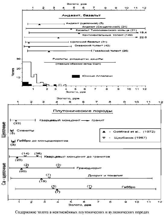Рисунок 2.9 показывает, что в эпитермальной среде концентрации золота в обычных первичных породах не отличаются более чем на порядок. Следовательно, степень концентрации золота в исходных породах, необходимая для образования рудных месторождений, является контролирующим фактором в образовании экологически значимых месторождений.