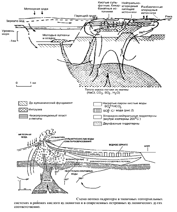В этой работе обсуждаются только вулканические процессы, поскольку здесь системы наиболее связаны с эпитермальным рудным генезисом.