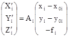 – элементам внутреннего ориентирования снимков fi , x0 i , y0 i ;
