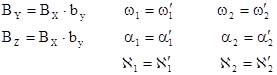 Например, если были определены элементы взаимного ориентирования a1 ’, À1 ’, w2 ’, a2 ’, À2 ’ и при этом величины параметров by , bz , w1 ’ были приняты равными нулю (by =bz =w1 ’=0), то BY =BZ =0, w1 =0, a1 =a1 ’, À1 =À1 ’, w2 =w2 ’, a2 =a2 ’, À2 =À2 ’.