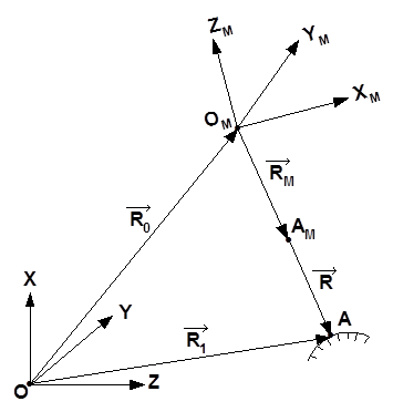 На рис.1: OXYZ- система координат объекта, ОМ ХМ YM ZM - система координат фотограмметрической модели , А – точка объекта ,АМ -точка фотограмметрической модели, соответствующая точке А объекта .