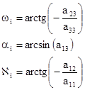 2. Затем по элементам aij матрицы Ai вычисляют угловые элементы внешнего ориентирования i-го снимка стереопары: