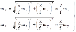 Для получения средних квадратических ошибок определения координат Х и Y точки местности продифференцируем первые две формулы выражения (1.8.4) по аргументам x, y, Z и перейдем к средним квадратическим ошибкам.