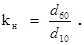 На основе указанных данных строят кривую суммарного гранулометрического состава. По указанной кривой определяют коэффициент неоднородности породы, под которым понимают отношение диаметра частиц фракции, составляющей со всеми более мелкими фракциями 60% вес. от веса всего песка, к диаметру частиц фракции, составляющей со всеми более мелкими фракциями 10% вес. от веса песка, т.е.
