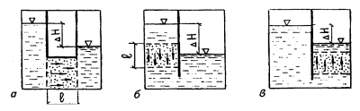 Схемы движения воды в фунтах: l — длина или высота образца грунта; ΔН — разность отметок воды перед входом в образец и выходом из него