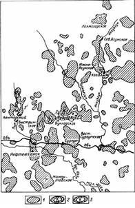 Рисунок.1.1. Схема размещения нефтяных (1), нефтегазовых (2) и нефтегазоконденсатных (3) месторождений Сургутского нефтегазоносного района