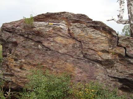 10. Образец № Б1.4. Кианитовый кварцит. Место отбора : Борисовские сопки (северная, 1 сопка) с.ш. 54° 15´ 20,6´´; в.д. 60° 40´ 49,8´´