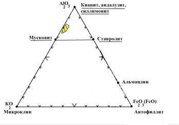 Рис. 20. Положение мусковит-кианитовых сланцев на диаграмме Al 2 O 3 - K 2 O - FeO *