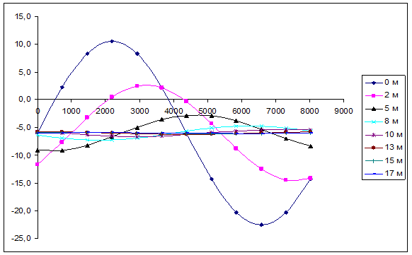 Для полуограниченного массива амплитуда годовых колебаний температуры пород на глубине Н определяется по известной формуле: