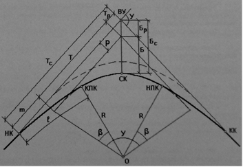 Пикетажное положение вершины угла поворота ПКву = 6 + 15, 20;