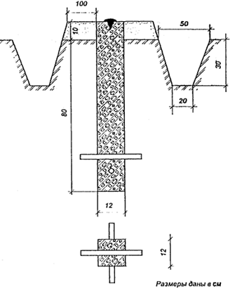 Стенные знаки более долговечны, чем грунтовые, более экономичны и просты при закладке. По конструкции стенные знаки могут быть различными. Один из них показан на рисунке 2.2.