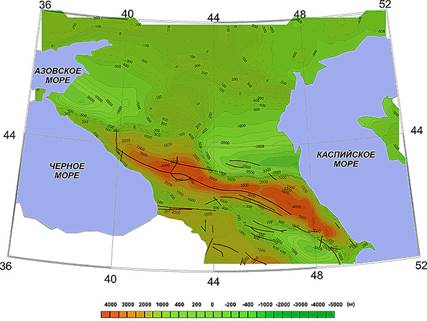 Горные сооружения Большого и Малого Кавказа располагаются в области континентальной коллизии (столкновения) литосферных плит. Рисунок 1 дает представление о региональной геодинамике обширной области от Северной Африки и Аравийского полуострова на юге, до южного склона Восточно-Европейской платформы на севере. В этой области представлены самые разные геодинамические обстановки: