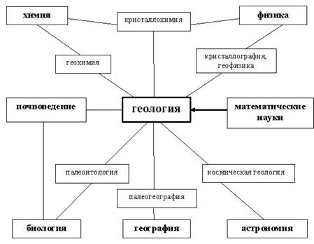 охрана и рациональное использование недр. Геология имеет тесную связь со многими науками. На приведенном рисунке указаны разделы наук, возникшие в результате взаимодействия геологии со смежными дисциплинами: