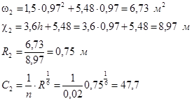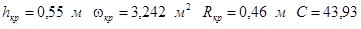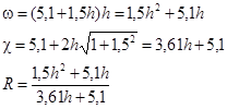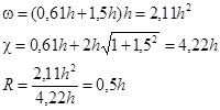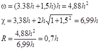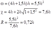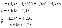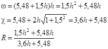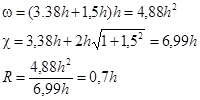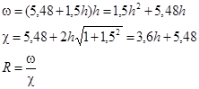 h=0,84 м ω=1,5h2 +5,48h=5,66м2 R=0,67 м.