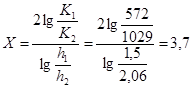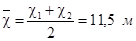 h1 =1,5 м h2 =2,06 м С1 =50,4 C2 =52,3 B1 =9,57 м B2 =11,25 м χ1 =10,5 м χ2 =12,5 м
