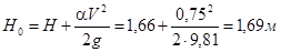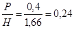 Задаемся P=0,4 м, тогда Н= hмаг. канала -Р=2,06–0,4=1,66 м.