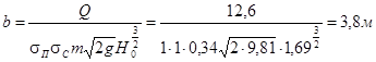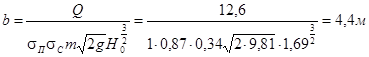 Для щелевых водосливов коэффициент расхода m≈0,48, коэффициент сжатия σс =0,95