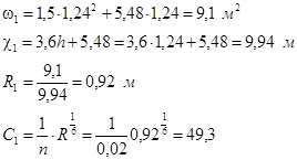 h=1,29 м ω=1,5h2 +5,1h=9,04 м2 R=0,93 м.