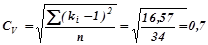 За методом моментів коефіцієнт варіації обчислюємо за формулою: