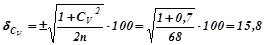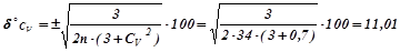 Величину відносної середньоквадратичної похибки коефіцієнта варіації δСV визначаємо за формулою:
