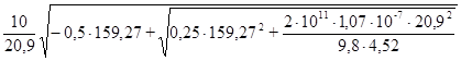Осевой момент сопротивления изгибу Wо , м3 в расчетном сечении БТ равен Wо = 4,96·10-6 м3 . Угловая скорость вращения БТ 20,9 с .