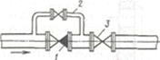 Малюнок 1 - Схема пристрою обвідної лінії до зворотного клапана: 1 - зворотний клапан; 2 - обвідна лінія із засувкою; 3 - засувка на напірній лінії насоса