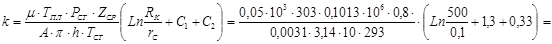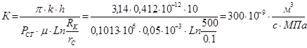 Зная коэффициент проницаемости k мы можем по формуле (5.12) определить коэффициент продуктивности К: