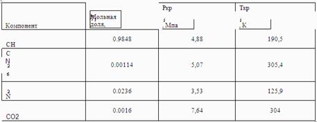 Относительный удельный вес газа по воздуху 0,56, низшая теплотворная способность колеблется в пределах 7788-7932 ккал. Среднекритические параметры газа, рассчитанные для среднего состава газа, составляют: Рс =4,48 МПа (45,7 кгс/см2 ),