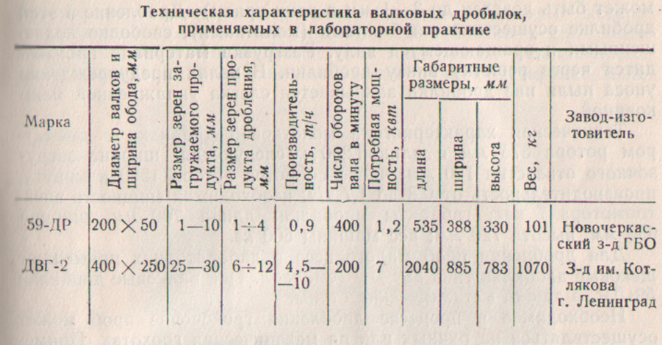 Следующая стадия дробления осуществляется на щековых дробилках малых размеров (см. табл. 1) или на больших валковых дробилках типа ДВГ-2 (табл. 2). Последние более производительны, и им следует отдать предпочтение.