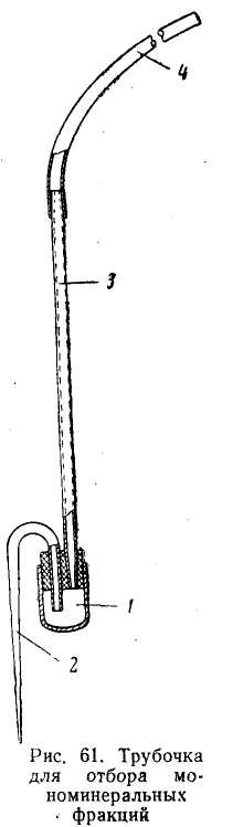 Техника выделения мономинеральных фракций непрерывно совершенствуется. Описанные выше методы и аппаратура, применяемая для этих целей, еще не являются достаточно совершенными для выделения минералов из любой их смеси. Особые затруднения, которые пока не могут быть преодолены использованием чисто механических методов, возникают при выделении тонкозернистых минералов. Для этих случаев остается приемлемой только методика избирательного растворения отдельных минералов. Однако не всегда удается подобрать избирательно действующий реактив. Трудно преодолимой остается проблема получения совершенно чистых минералов, хотя в ряде случаев при изучении вещественного состава именно к этому стремится исследователь. Для окончательной очистки мономинеральной фракции часто приходится прибегать (на заключительной стадии работы) к отбору посторонних зерен под бинокуляром. Эта операция очень трудоемкая и утомительная, даже если при этом используются такие приспособления, как специальные трубочки-ловушки.